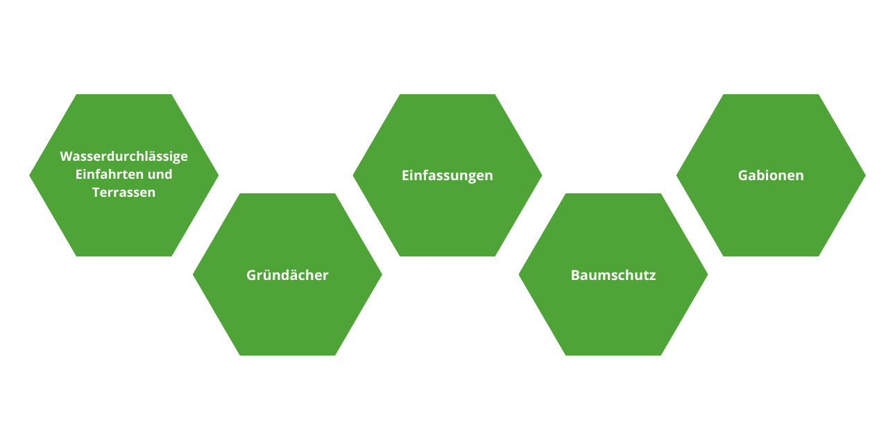 Eine übersichtliche, visuelle Darstellung, wo und wie unsere nachhaltigen Lösungen angewendet werden können.