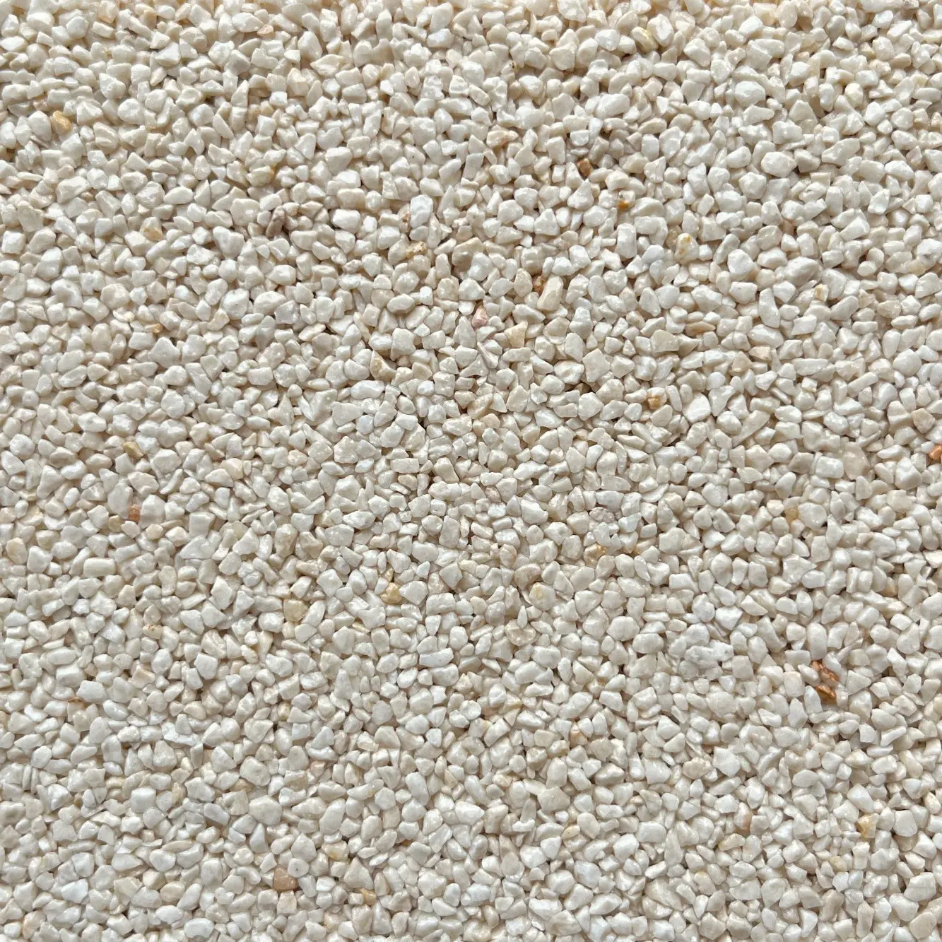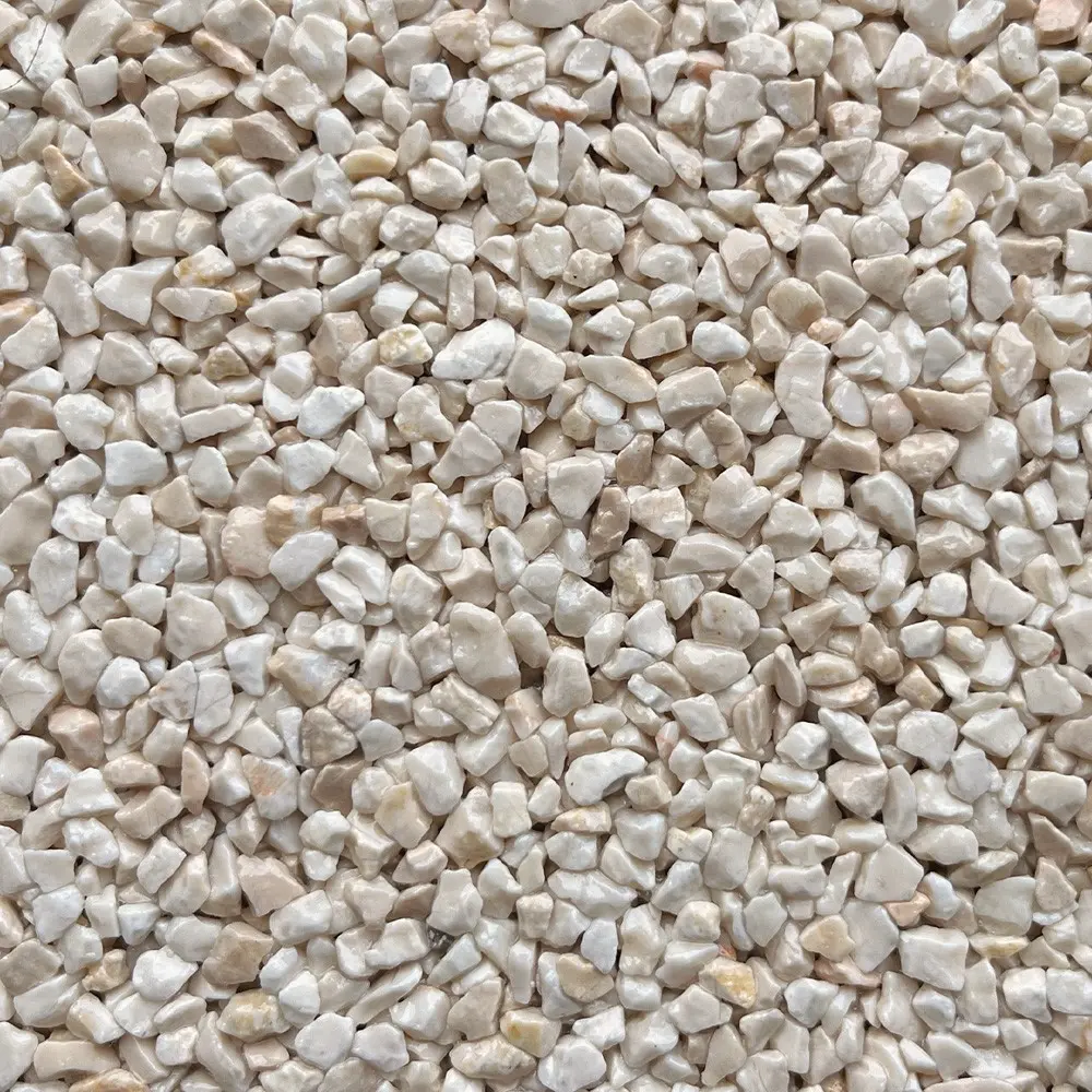 Bondi Breeze – Een lichte en natuurlijke grindblend met hoofdzakelijk witte en gebroken beige tinten, subtiel aangevuld met warme zandkleurige accenten. De mix van heldere, zachte steentjes geeft een luchtige en tijdloze uitstraling die perfect past in zowel moderne als klassieke buitenruimtes. Dankzij het neutrale kleurenpalet creëert deze mengeling een elegante en rustige sfeer, ideaal voor opritten, terrassen of tuinpaden.