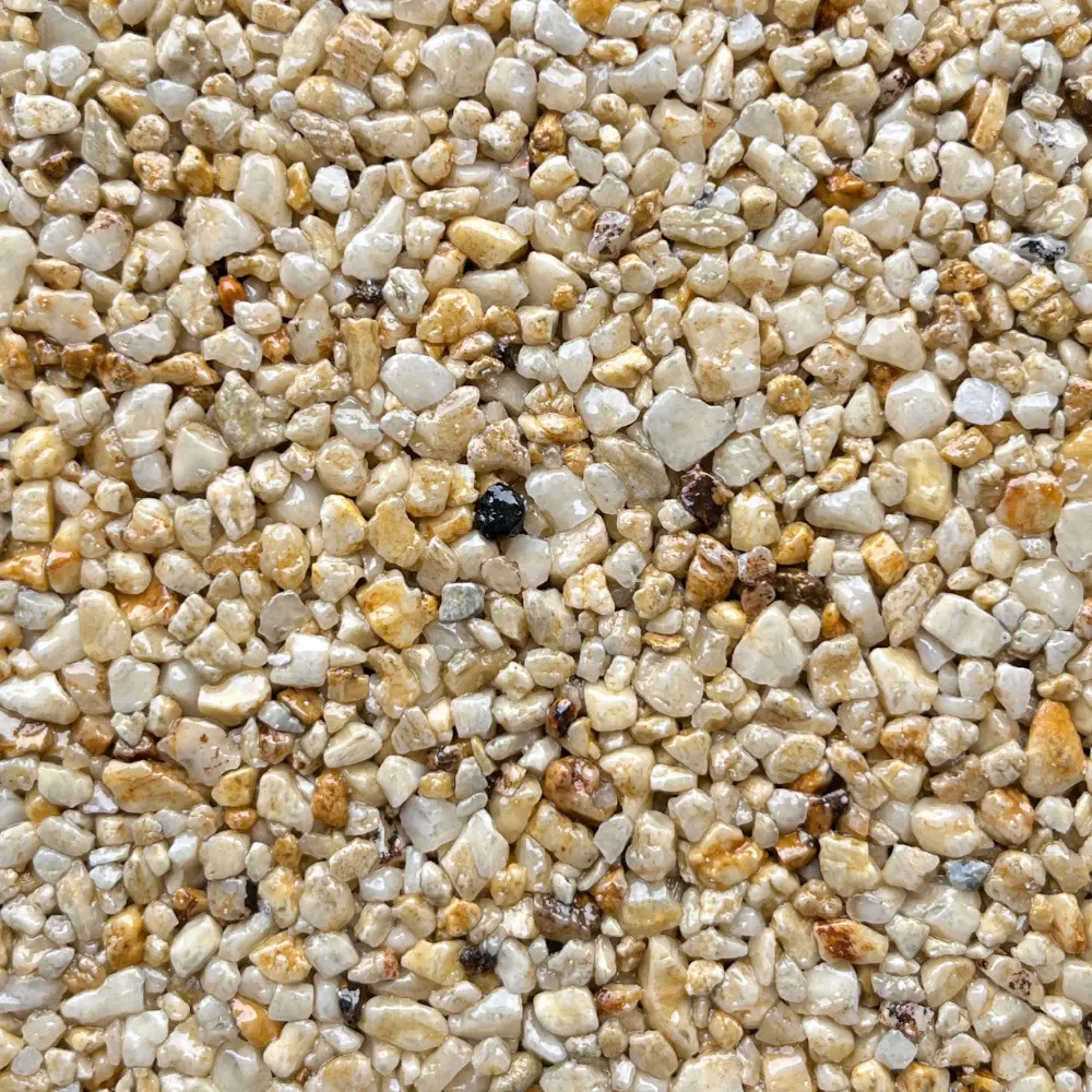 Cortina – Een warme, natuurlijke blend met een zacht beige basis, aangevuld met champagne-, zand- en honingaccenten en sporadisch een donkerder steen voor diepte. Het geheel oogt licht en zonnig, met een subtiele glans die buitenruimtes een elegante, verzorgde uitstraling geeft.